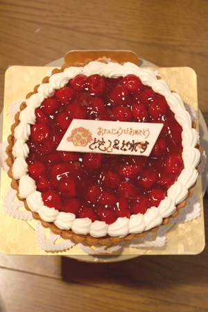 誕生日ケーキは近所のケーキ屋さんで買ったベリーケーキ。