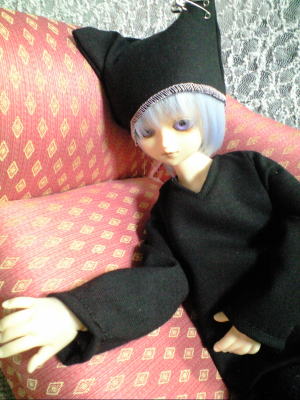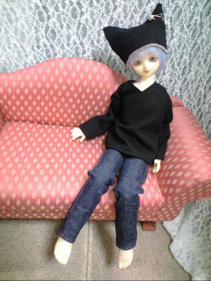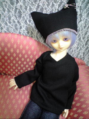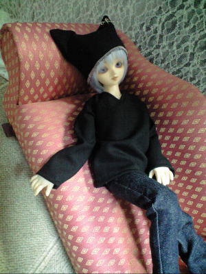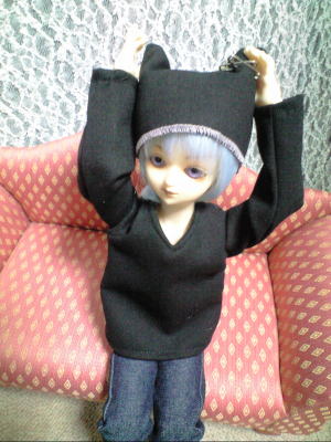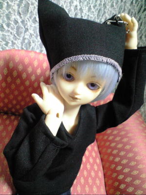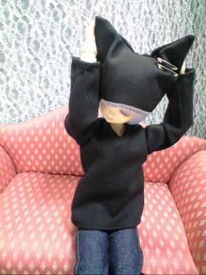 ただの黒いトレーナーと猫耳風帽子ですが、