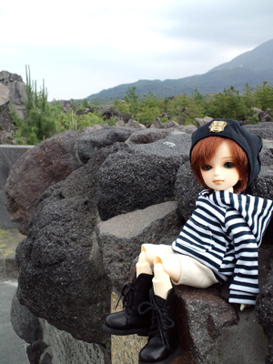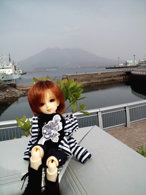 後ろの見えるのは桜島です。