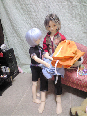 灯「で、これを持ってお泊りだから。柚姫嬢の所。」 (カポ) 実兎「は?タカネは?」 灯「お前だけ」 |