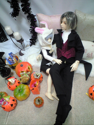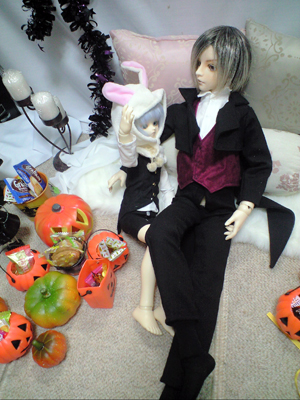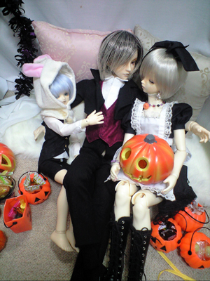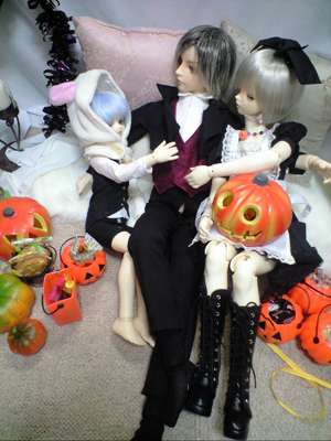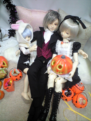 黒いアリスと、 帽子の無い帽子屋(本末転倒)と 白うさぎ。 仮装と言うには微妙ですが、 今年はこんな感じになりました。 お写真はこちら♪ |